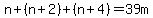 if the perimeter is 39m, then n%2B%28n%2B2%29%2B%28n%2B4%29=39m ...solve for n