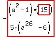 For tutors: simplify_cartoon( ((a^2-1)/(2-5*a))*(15*a-6)/(a^25*a-6) )