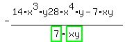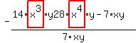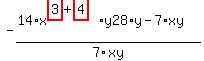 For tutors: simplify_cartoon( (14*x^3*y28*x^4*y-7*xy)/(-7*xy) )