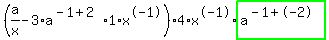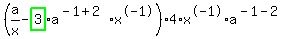 For tutors: simplify_cartoon( (a/x-3*a^2*c^0*x^-1/a)*(4*x^-1/a*a^-2) )