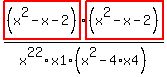For tutors: simplify_cartoon( (x^2-x-2)*(x^2-x-2)/(x^22*x1)/(x^2-4*x4) )