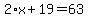 For tutors: simplify_cartoon( 2*x+19=63 )