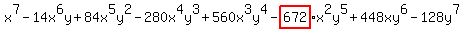 keep in mind the exponents will have a sum of 7 in each term, and the first factor will decrease in power as the second increases.
