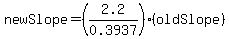 new slope = (2.2*(change in y))/(0.3937*(change in x))